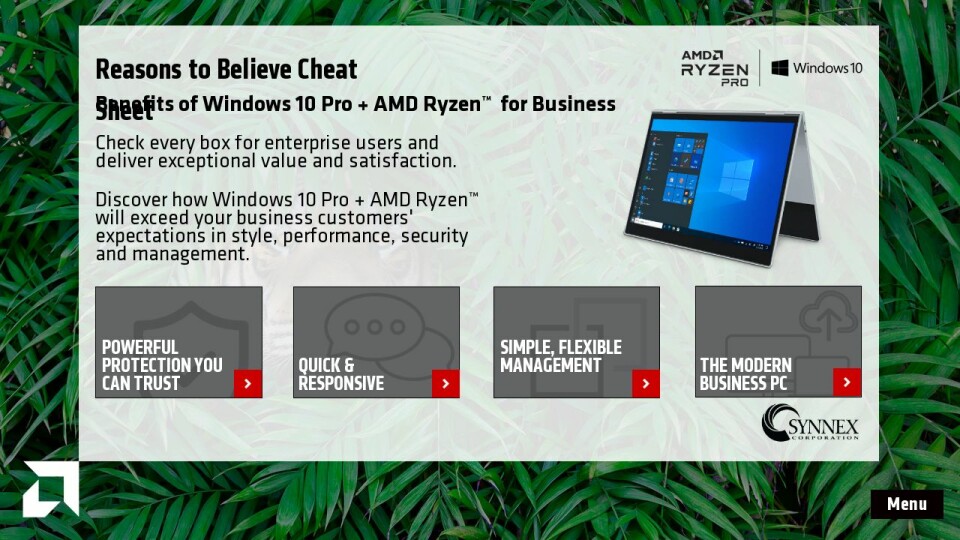 Discover how Windows 10 Pro + AMD Ryzen™ will exceed your business customers' expectations in style, performance, security and management.