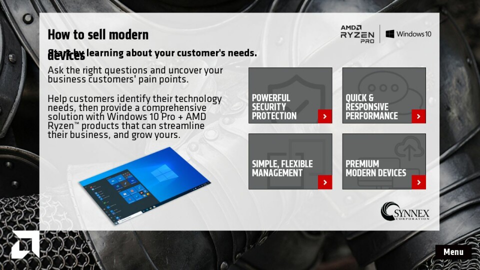 2. Testing conducted by AMD Performance Labs as of January 10, 2019. Cinebench nT used to measure CPU Multi Thread Performance. Performance presented in A12-9800B (100%) vs Ryzen 7 PRO 3700U scored a 688.4775, while the A12-9800B scored a 240 for a comparison of 688.4775/240=2.87. PCMark 10 used to measure System Performance. Performance presented in A12-9800B (100%) vs Ryzen 7 PRO 3700U scored a 4075.5, while the A12-9800B scored a 2547.33 for a comparison of 4075.5/2547.33=1.60. System Configurations: AMD Ryzen™ 7 PRO 3700U, 2x4GB DDR4, Radeon™ Vega 10 Graphics (driver 25.20.14102.16), Samsung 850 Pro SSD, Windows® 10 Pro x64. AMD PRO A12-9800B, 2x4GB DDR4, Radeon™ R7 Graphics (driver 22.19.662.4), Samsung 850 Pro SSD, Windows® 10 Pro x64 PCMark and 3DMark are registered trademarks of Futuremark Corporation. PC manufacturers may vary configurations yielding different results. All scores in are an average of 3 runs with the same settings. Performance may vary based on use of latest drivers. PP-7