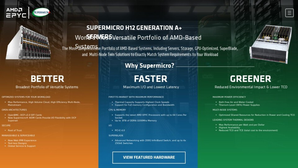 The Most Comprehensive Portfolio of AMD-Based Systems, Including Servers, Storage, GPU-Optimized, SuperBlade, and Multi-Node Twin Solutions to Exactly Match System Requirements to Your Workload
