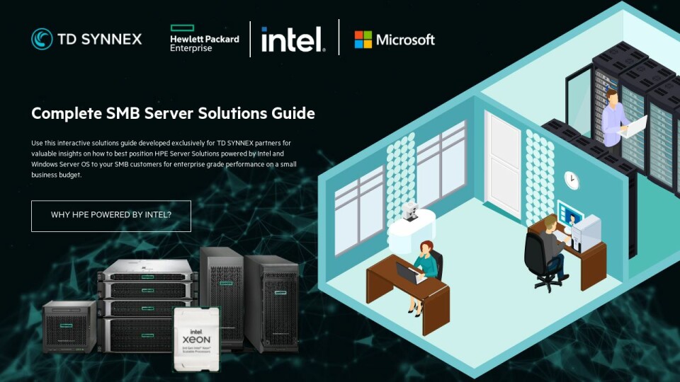 Use this interactive solutions guide developed exclusively for TD SYNNEX partners for valuable insights on how to best position HPE Server Solutions powered by Intel and Windows Server OS to your SMB customers for enterprise grade performance on a small business budget.