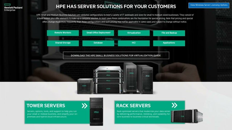 Get the ideal choice for remote offices and growing businesses, and deliver agility, security, and economic control across your hybrid cloud infrastructure. HPE ProLiant Tower Servers deliver simple, efficient business value, and feature user-inspired innovations to make IT simpler including proven configurations that provide easy remote access and improved energy efficiencies to lower your TCO.