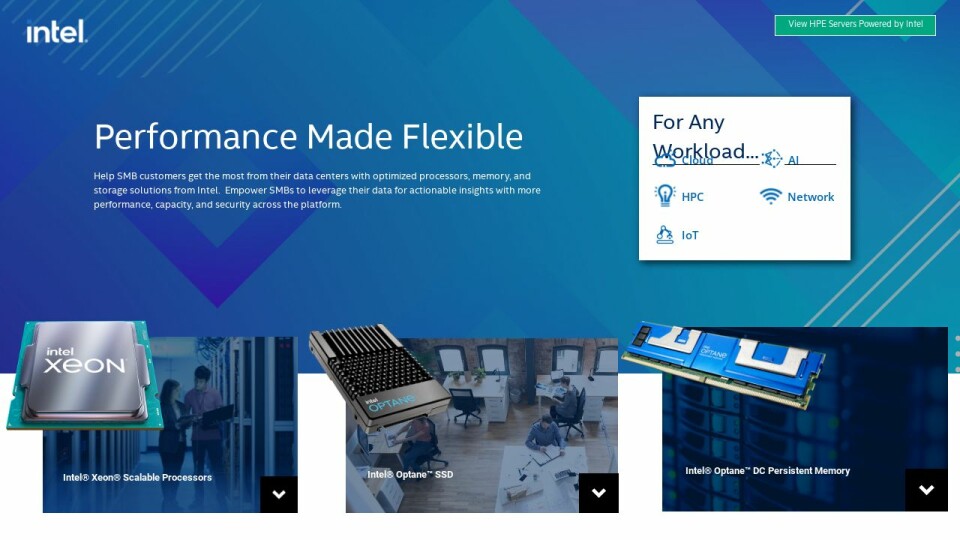 Help SMB customers get the most from their data centers with optimized processors, memory, and storage solutions from Intel. Empower SMBs to leverage their data for actionable insights with more performance, capacity, and security across the platform.