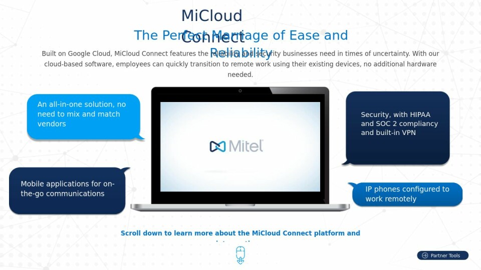 - Coming soon: cloud-based apps and APIs to work across the entire Mitel portfolio, providing user experience continuity when on-premises customers migrate to the cloud.