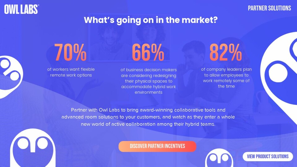 Owl Labs sets your business up for success from day one with partner-exclusive sales materials, demo units, and lucrative financial incentives.