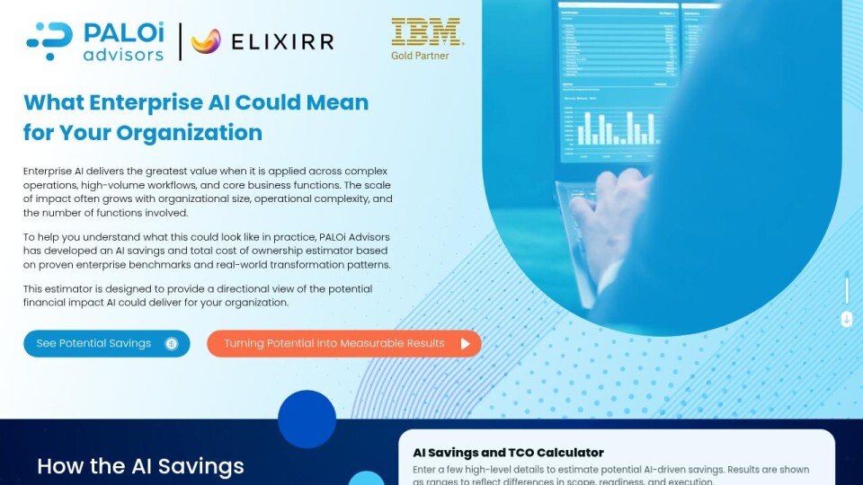 To help you understand what this could look like in practice, PALOi Advisors has developed an AI savings and total cost of ownership estimator based on proven enterprise benchmarks and real-world transformation patterns.
