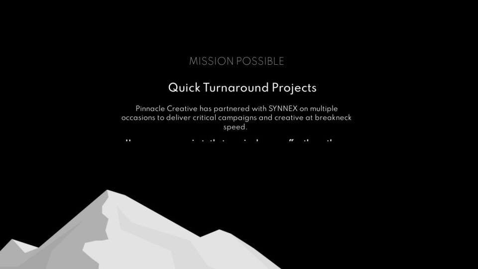 Pinnacle Creative has partnered with SYNNEX on multiple occasions to deliver critical campaigns and creative at breakneck speed.