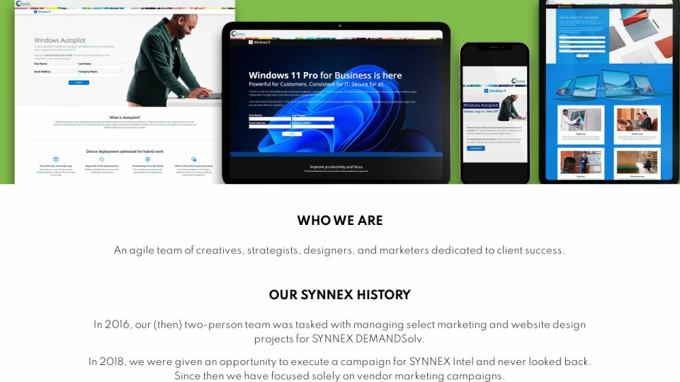 In 2018, we were given an opportunity to execute a campaign for SYNNEX Intel and never looked back. Since then we have focused solely on vendor marketing campaigns.