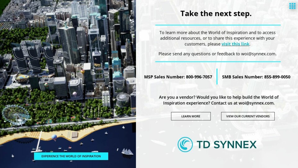 Are you a vendor? Would you like to help build the World of Inspiration experience? Contact us at woi@synnex.com.