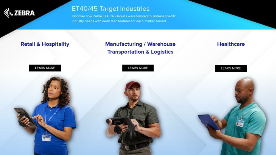Discover how Zebra ET40/45 Tablets were tailored to address specific industry needs with dedicated features for each market served.